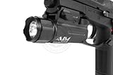 The AIM Sports Tactical flashlight is an ultra-bright compact lighting unit that's as affordable as it is bright. It comes with a universal mount for various mounting applications. While it fits rifles and SMGs with standard 20mm weaver rails/RIS set-ups, its compact size also makes it ideal for use with railed-frame pistols (standard 20mm rails) as it fits snugly just under the pistol frame in front of the trigger. The weaver mount features a quick release for ultra-fast and easy installation/detachment.This unit features an upgraded 150-lumen bulb from the standard 90-lumen bulb present in the AIM FQ90 flashlight, making for an even brighter light!This flashlight is constructed of solid anodized aluminum and high strength nylon polymer for a highly reliable, shockproof build. It's a highly effective way to light your way through low-lighting scenarios and a great way to supplement a tracer unit.It's one of the highest-output flashlights currently on the market for less than , and is an absolute amazing value!Specs:- Weaver Style/Picatinny Quick Release Mount- Constructed of Solid Anodized Aluminum Flashlight- Power output - 150 lumens- Battery type - CR123A Lithium (requires 1)- Length - 3 inches- Weight - 4 ounces- Bezel diameter - 1 inch- Body width - 1 inch- Sliding on/off switch